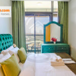 Upon entering, you’ll be greeted by a spacious living area, complete with a cozy sofa where you can unwind after a day of exploring the city. The focal point of the room is a large LED SMART TV, perfect for relaxing with your favorite shows or movies, all while staying connected with complimentary high-speed WiFi.