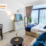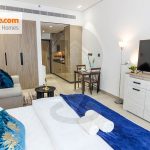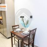 Welcome to our fully furnished apartment! This cozy living space is equipped with everything you need for a comfortable stay. It features a king-size bed, a fully equipped kitchen with appliances, a washing machine, and amenities such as an iron and hairdryer. Linens, towels, blankets, and pillows are provided for your convenience. Stay entertained with a big LED TV and stay connected with free high-speed WiFi. The apartment also has a balcony for you to enjoy. With a size of 442.61 SqFt, it offers ample space for your comfort.