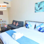 This fully furnished apartment offers a comfortable and convenient living space. Residents have access to free parking, ensuring a hassle-free experience for their vehicles. The private kitchen is fully equipped with essential appliances, including a refrigerator/freezer, oven/cooker, cutlery, crockery, microwave, and kettle. A washing machine is also provided for residents’ laundry needs. The bedroom features a cozy double bed, and linens, bath towels, blankets, and pillows are provided for a comfortable stay. To assist with personal care, an iron, ironing board, and hairdryer are available. The apartment is equipped with a big LED TV and offers free high-speed WiFi, allowing residents to enjoy entertainment and stay connected. A sofa set in the living area provides a comfortable seating arrangement, and a balcony offers a pleasant outdoor space. With a size of 367 square feet, this apartment provides a compact yet functional living environment. Additionally, a bus stop is conveniently located downstairs, providing easy access to public transportation.